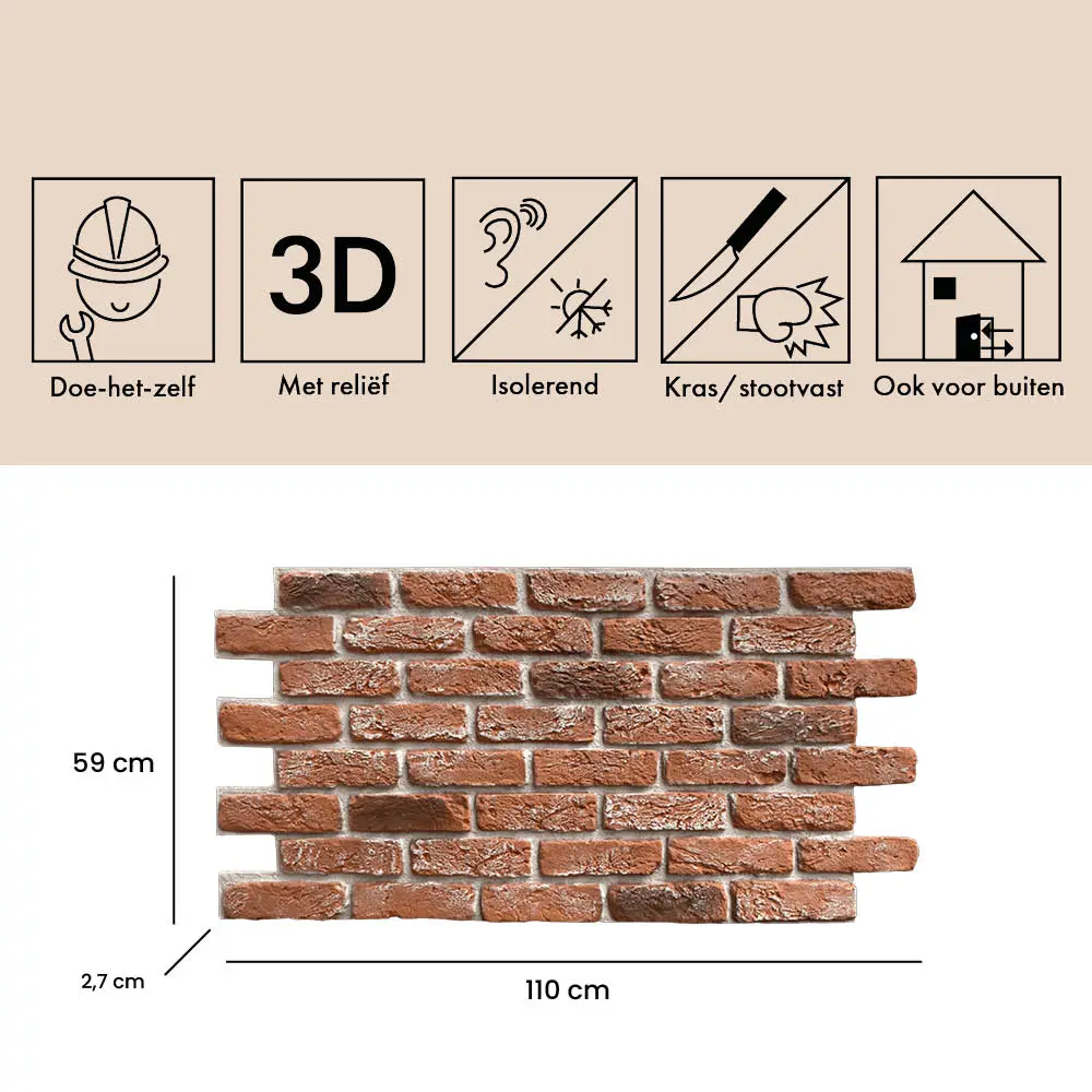 Decoratieve baksteenstrips panelen ontworpen met de hoogste kwaliteit baksteendessins voor de industriële, urban look, met een realisme dat bijna identiek is aan een echte bakstenen muur. Wij bieden een breed scala aan modellen in meerdere kleuren, maten en verschijningen, van moderne bakstenen tot de oudere, versleten, rustieke bakstenen of de elegante Engelse baksteen. Zo worden ze ook herkent door hun maten die vaker voor komen in ons land. Ze kunnen voor elk type doeleinde worden gebruikt, of het nu gaat om renovatie of nieuwbouw, dankzij de imitatie baksteenstrips panelen kunnen ze op een snelle en schone manier worden aangepast aan elk type oppervlak. Deze panelen zijn ontworpen voor eenvoudige installatie en een hoge mate van tevredenheid, aangezien het belangrijkste is om aan de verwachtingen van de consument te voldoen door kwaliteit en design te bieden.