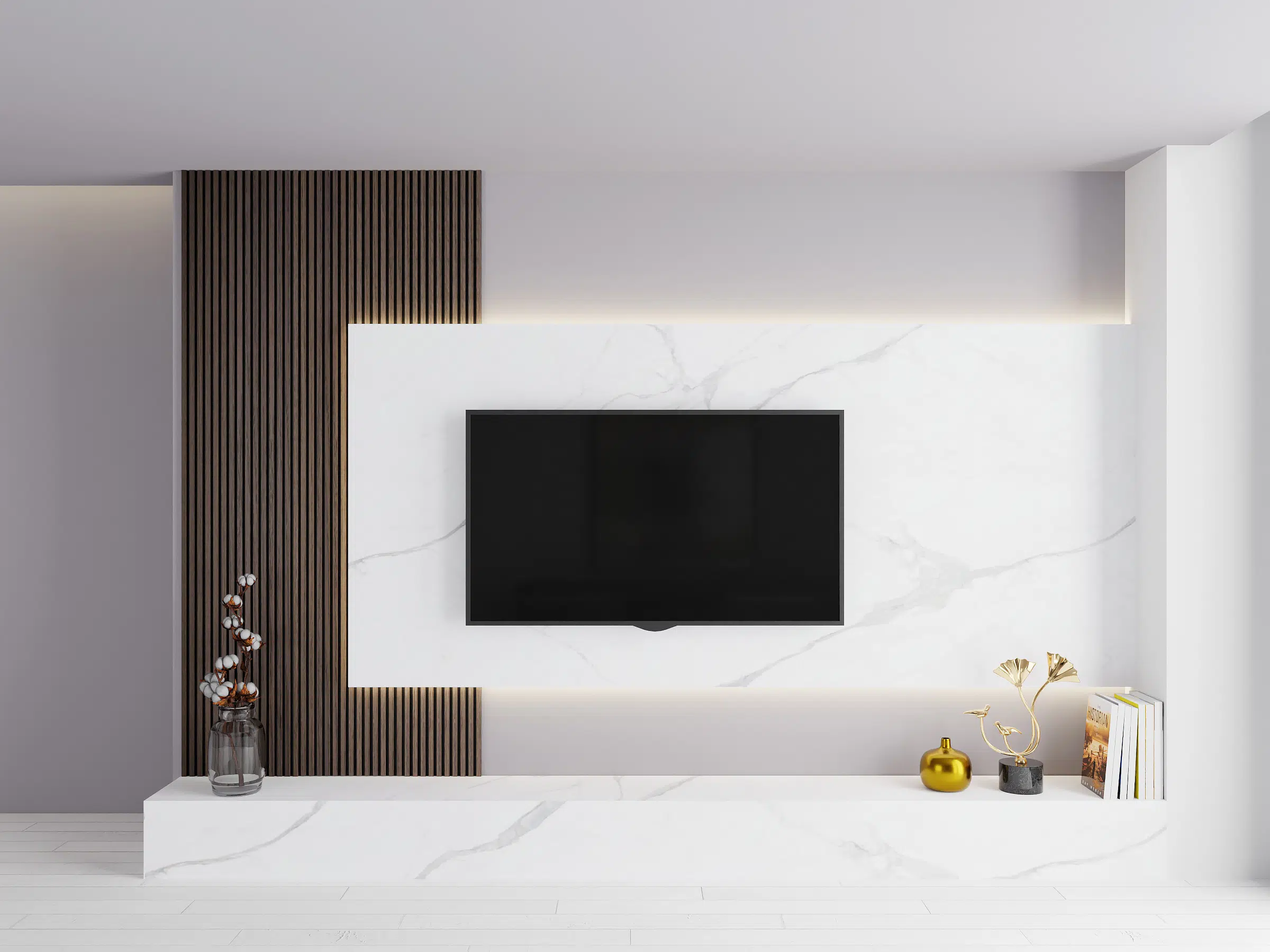 Creëer een stijlvolle blikvanger in je woonkamer met onze marmerlook panelen voor cinewalls.