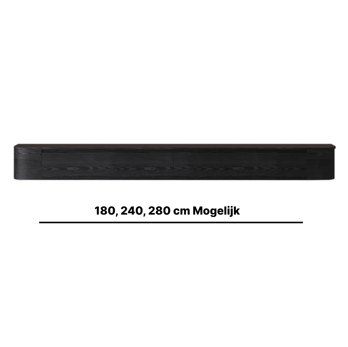 Het Japandi TV-meubel Curf Zwart Eiken combineert tijdloze elegantie met een stoere, moderne twist. Het strakke, zwevende ontwerp geeft je interieur een ruimtelijk gevoel, terwijl het luxe zwarte eikenfineer een contrastrijke, hoogwaardige uitstraling biedt. Dankzij de subtiel afgeronde hoeken (Curf-design) en de matte lak behoud je een harmonieuze balans tussen puur minimalisme en warme, natuurlijke details.